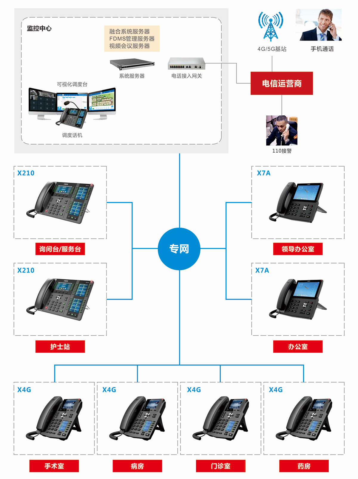 ·诊室、药房、员工办公室等场所部署方位X4G商务IP话机