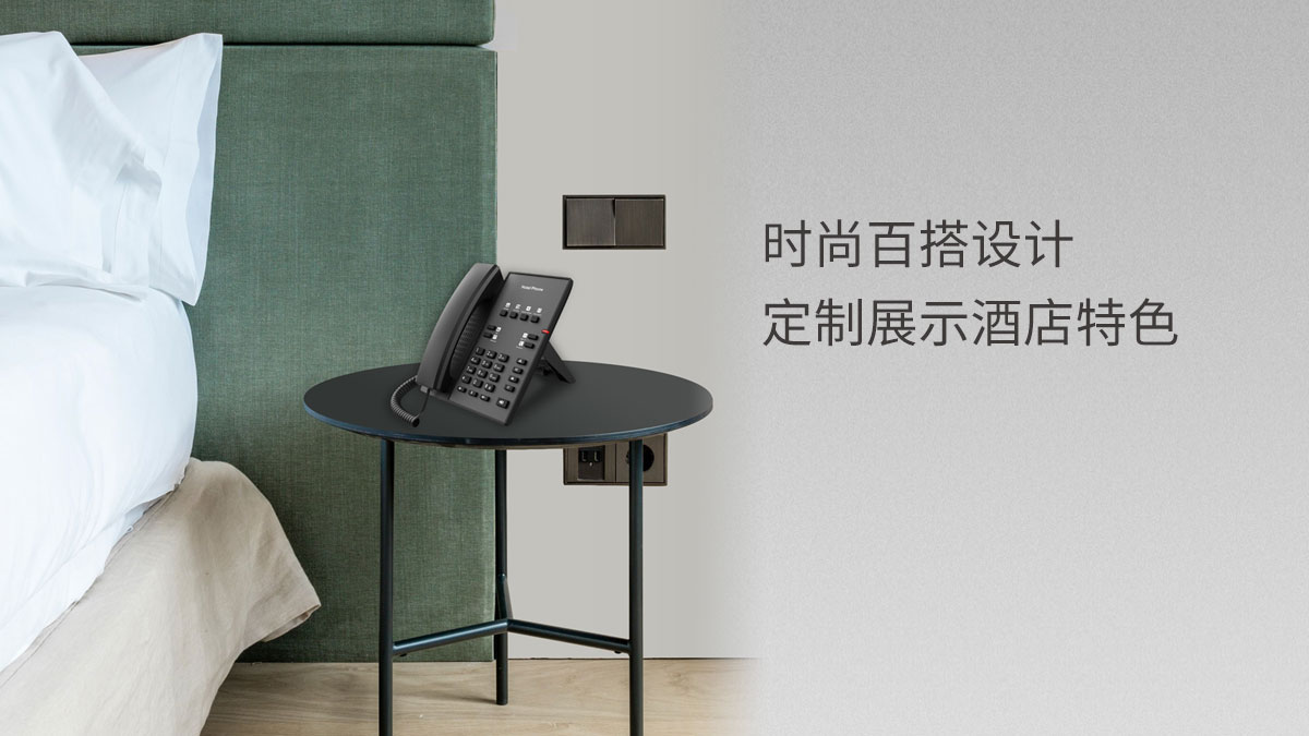方位H1话机拥有简约的外观设计,沉稳黑的精致配色,更显时尚优雅,适用于丰富多样的酒店风格。