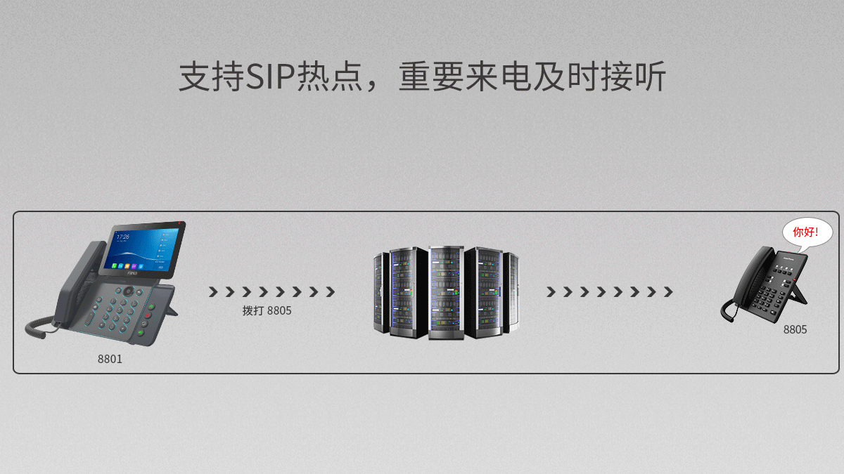 方位H1可与其他IP话机共享服务器提供的同一个号码。当接到来电时,每个电话分机同时振铃,确保工作人员在办公环境的每个地方都不会错过重要来电。