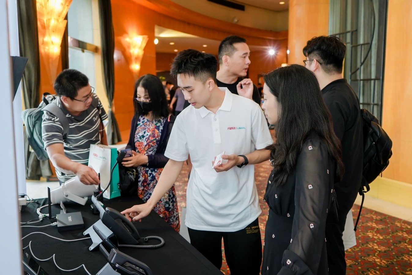 活动现场,方位全新发布V61/V62系列彩屏商务话机、H4/H6系列酒店话机、A12语音对讲、i60/i60K视频门禁、DH50-B蓝牙商务耳机、CA400一体化无线会议解决方案等新品,丰富的产品矩阵,满足用户多元化需求;产品展示区域深受参会者的喜爱,纷纷驻足体验。