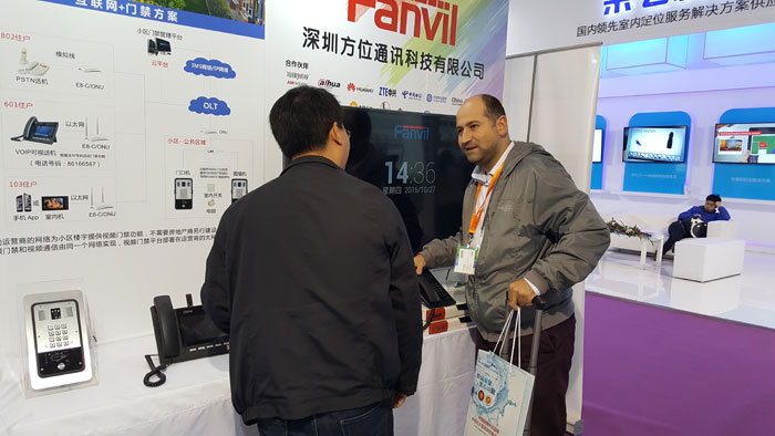2016年10月25日至28日,深圳方位通讯参加全球规模最大、最权威、最具影响力的安防展会之一-中国国际社会公共安全产品博览会在北京中国国际展览中心举办。 深圳方位通讯公司带领最具行业顶端技术的产品亮相此次盛会,不仅展示了方位高清语音品质、节约投资成本、快速部署、维护简单、无缝扩容等优势的行业产品,同时还展示了方位备受海内外瞩目的最新系列彩屏话机,最新领域的方案,展示领先技术实力。得到各方热切关注和众多参观者的慕名而来。