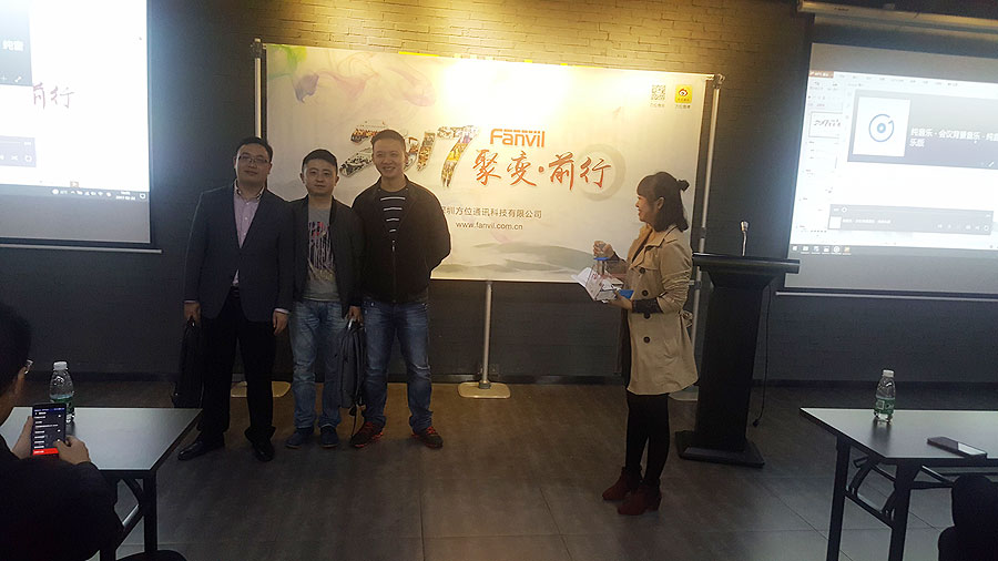 2017年2月22日下午,方位通讯联合成都智科通信、广州康达特、广州观星以及多家行业伙伴一起相聚广州天河区建中路贝塔空间多功能会议室,共同展开讨论行业市场发展趋势以及彼此协作共赢会议取得圆满结束。 会议中,方位通讯销售经理--白奎华、成都智科通信副总经理--李宴、广州康达特华南区销售经理--孙炎、广州观星总经理--王展分别为我们带来了“2017聚变、前行”、“因为专注、所以专业”、“智慧、融合、创新引领IP融合通信市场”、“办公通讯之流水行云”,各家各作伙伴为在场所有嘉宾分享着公司发展方向以及推崇产品,也对未来在整个市场的协作如何能响应,互助互赢分别作了详细的分享。对于中间穿插的抽奖环节也使会议掀起一阵阵热潮。 方位展台上,展现出最新X系列彩屏话机以及行业SIP门禁对讲产品,公司产品的双彩屏设计,获得现场客户的高度认可,对于一个快速发展的时代,提供一款最高性价比优势的产品来帮助企业提高工作效率是极其重要的选择。同时展台区还有成都智科通信提供了最具创新性的产品,集小型呼叫中心和IPPBX的一体机备受青睐,多功能的产品为助力企业发展提供了很好的帮助。此外,广州康达特展示了品牌耳机、广州观星代理森海塞尔品牌产品,用于呼叫中心体系的多功能耳机,其中包括长距离连接的蓝牙耳机设备、便捷式的办公室设备,其拥有着降噪功能,让用户得到高品质的体验。 方位与各位合作伙伴长期以来的发展离不开大家的支持,我们也会在各地进行巡展演示,想进一步了解更多,请继续关注我们,期待我们下次巡展再见!