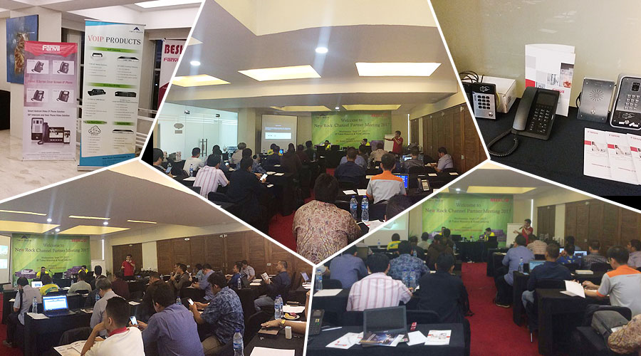 2017年9月13日,方位联合迅时通信与当地代理在雅加达举办了秋季产品推介会,并与到会50多家当地客户一起介绍了方位最新产品—方位的X系列彩屏话机和方位的售后服务政策;到会客户表达了浓厚的兴趣和积极了解方位最新的产品,对未来方位的产品也非常有信心。