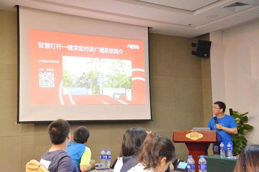方位市场部-朱继娟 行业产品市场经理黄永威针对行业门禁对讲产品提供了迎合市场需求的解决方案,其中包括:五方对讲解决方案、停车场一键求助对讲系统整合解决方案、校园IP广播对讲整合解决方案、智慧灯杆一键求助对讲广播解决方案,代理商们现场对这些方案表示出高度兴趣,纷纷以提问方式想要获取更多信息,这也充分表明,行业产品发展前景是不可估量的。