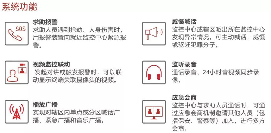 系统概述智慧灯杆作为智慧城市的重要组成部分,各地政府正实施一系列的智慧路灯和智慧庭院灯项目,为市政道路、旅游景区、广场及小区提供智慧照明、WIFI覆盖、4G/5G微基站、一键求助报警、城市广播、监控摄像、微环境监测等功能,与道路照明灯杆浑然一体的融合,兼顾城市道路构筑的美学需求和满足城市管理诸多功能需求。 智慧灯杆IP紧急求助终端装有呼叫装置,供紧急情况下使用。当有人遇到抢动、人身伤害时,用报警装置向就近报警中心紧急报警;派出所在监控中发现异常情况,可主动喊话,威慑或驱赶犯罪分子。 ![]() ![]() ![]() |