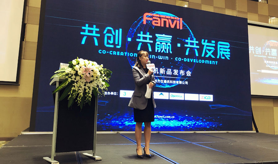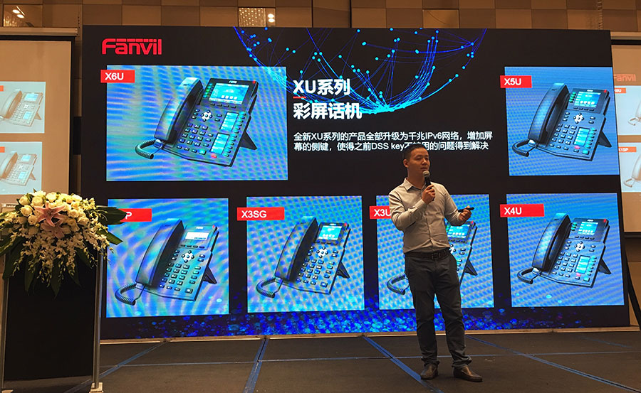 方位通讯 市场部-朱继娟 首先,方位通讯销售经理白奎华作“共创、共赢、共发展”的主题演讲,主要针对方位今年发布高端话机X210、X7、X7C展开,方位通讯公司一直致力于通讯产品的研发与生厂,方位从单纯的“生产制造”逐步成为具有一定影响力的“品牌经营”企业,这是公司的一个成长,也是一种蜕变。产品的迭代更新也是为了更好地迎合市场的需求,公司不断丰富产品线,从入门级到高端产品方位不断加大投入,从而有效占据市场一定的份额;白经理对新产品的各项功能及亮点作了详细的解说,并对方位X系列的产品更新升级到XU系列也做了介绍,XU系列产品有着功能以及外观上的升级,全新XU系列的产品全部升级为千兆IPv6网络,增加屏幕的侧键,使得之前DSS按键不够用的问题得到解决。白经理还对公司的未来发展进行了展望,高端话机的发布又将是公司迈向更远征程的新起点。 ![]()