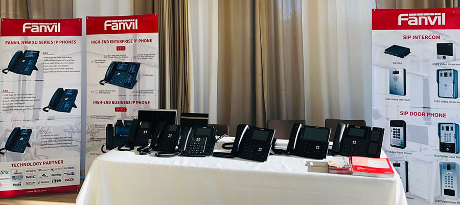 2019年9月20日,VoIP Telecom活动日在巴黎举行。方位及法国代理商负责人Damein Geffrey 先生受邀与VoIP Telecom的核心销售技术团队进行了产品交流和市场分享,探讨未来IP通讯行业的发展前景及合作策略。![]() 作为在法国市场上非常活跃的IP通讯产品品牌之一,方位携X系列高端IP话机和最新的XU系列IP话机出席了此次活动,为迎合市场的需求,方位一直推陈出新,在原有的产品功能上再进一步升级, 会议现场为有着350多位员工的VoIP Telecom集团及其他合作伙伴进行了产品展示和功能介绍,引起了与会者极大的兴趣。 图为方位展出的高端IP话机和行业产品