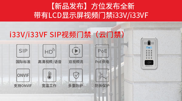 为更好满足门禁市场多样化的需求,方位今日正式推出第一款带LCD显示屏的SIP视频门禁产品i33V/i33VF。i33V/i33VF采用清晰背光显示屏,拥有12个标准数字按键以及3个功能按键,操作更加直观便捷。对比方位以往门禁产品,i33V/i33VF在外观和用户体验上都有了质的飞跃。
