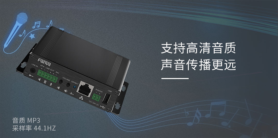 ![]() 数字化转型浪潮之下,公共广播多系统融合的趋势也日益明显。为了满足日益增长的市场需求,方位通讯推出了新一代SIP广播网关——方位PA3,它支持MP3等高保真音质播放、拥有丰富的拓展接口,可轻松联动多种设备,为用户带来跨区域的广播、呼叫、对讲、视频等体验。 高保真音质,完美触达每位听众 ![]() 在音质方面,PA3延续了以往的出色表现:支持宽带音频解码G.722和Opus,还增加了MP3音频解码,可为用户带来优质、清晰的电信级听觉体验;即使身处开放式大面积的公共区域,高清音质也能完美呈现,最大程度地触达每位听众,减少噪音干扰,避免听众遗漏重要的广播内容。 另外,PA3还支持超大内存U盘及TF卡连接(最高内存可达32G),实现本地MP3音频文件的储存及离线播放,播放时间由你一手掌握。 支持云广播,让传播无边界 ![]() 方位PA3通过系统即可进行云端设置,实现跨区域广播联动,如定时广播、分区广播、喊话广播、消防广播等,减少人力成本的同时还提高了办事效率。 高清视频联动,全方位守护公共安全 ![]() 除了广播、采播功能外,方位PA3还支持与摄像头联动,实现与视频话机的音视频通话;通过查看摄像头的高清视频图像,对周围环境的实时监控,全方位守护公共区域往来人员的安全。 多种外部音源,轻松接入 ![]() 方位PA3新增的音频输入接口,让音源输入方式变得多样化:无论是手机、话筒,还是DVD、FM广播,任何一种方式都可轻松接入。 接口丰富,适用更多应用场景 ![]() PA3拥有丰富的接口配置,让二次开发变得快速简单:可根据项目需求定制合适的广播、功放和对讲、视频设备,满足多种场景不同人群使用需求,如校园、商场、火车站、建筑等场所。 ![]() 总的来说,方位新一代SIP公共广播网关PA3,专为公共广播行业集成商与终端用户研发设计,集广播、采播、对讲等功能接口于一体,简单可靠、联合开放,让沟通真正融合统一,赋能广播行业数字化转型。 方位PA3 SIP广播网关将为您带来全新感受,敬请期待! |