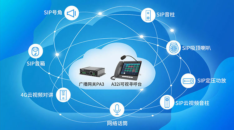 方位广播解决方案的核心产品包括PA3广播网关和A32i可视寻呼台。在局域网应用,该两个核心产品可以自组网,实现广播和对讲功能。如果要实现云广播功能,还需要引入第三方的融合广播系统。通过PA3广播网关技术,可以衍生出系列的广播产品,包括SIP音箱、SIP音柱、SIP定压功放、4G云播可视音柱等。 方案都有哪些亮点?