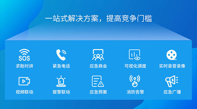 01、一站式解决方案,提高竞争门槛 方位新一代广播行业解决方案以IP通信为基础,标准SIP协议为核心,集求助对讲、紧急电话、应急广播、应急会商、可视化调度、实时录音录像、视频联动、报警联动和应急预案等多种功能为一体,提高了行业准入的门槛;集成商可按需客制化,提升解决方案价值。