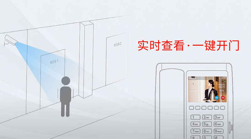![]() 多而乱的设备接线,不仅提高了酒店布线成本,也影响了酒店客房整体美观度,降低宾客入住的舒适感。方位H3W/H5W话机支持通过2.4G 内置Wi-Fi功能实现无线连接网络,免去复杂的网络布线。在良好的Wi-Fi环境中,宾客可以在房间的任何位置进行高清、稳定的语音通话,不受布线及空间的限制,沟通更加自由! 实时查看,一键开门