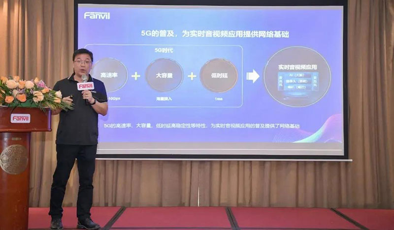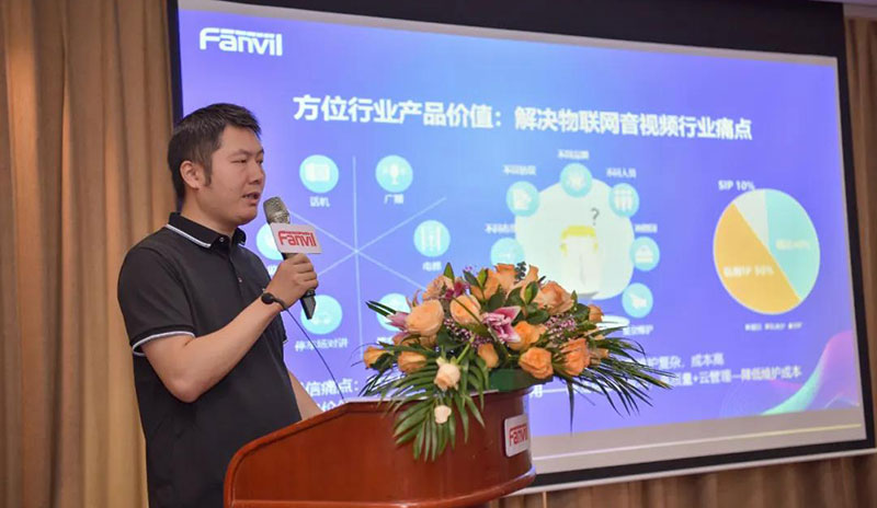 方位通讯生态合作总监 黄永威 随后,方位通讯生态合作总监黄永威为全国渠道合作伙伴阐述了音视频物联网行业的发展趋势以及方位通讯在行业中的优势。黄永威表示,5G时代的到来,物联网音视频应用将迎来发展新契机。实时音视频应用,给用户带来更高清、实时、流畅、稳定的通信体验,将成为物联网的重要应用之一,共享物联网万亿市场。 ![]() 作为首先提出音视频物联网(A&V-IoT)概念(即音视频终端通过物联网相互连接,通过SIP技术实现实时音视频流媒体互联互通)的企业,方位通讯拥有19年的音视频终端研发经验,品质超高,音质超清,开放兼容,深度赋能各生态合作伙伴,助力各行各业数字化转型升级,共同构建无边界沟通的智能世界。 融合互联,开拓行业新蓝海