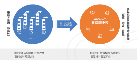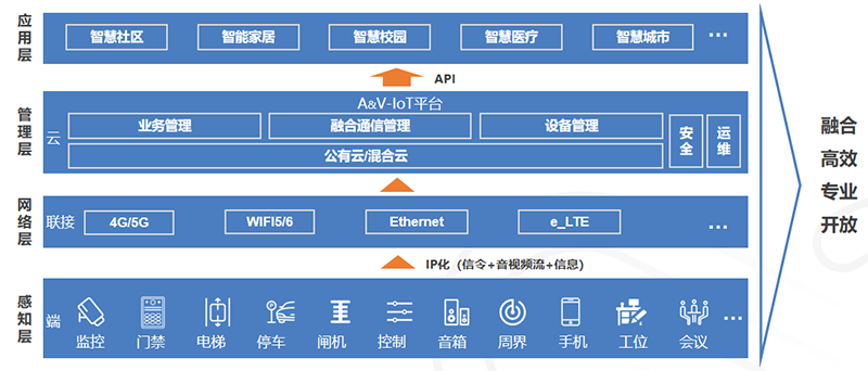 ![]() 03 方位通讯聚焦A&V-IoT四大核心亮点 A&V-IoT音视频物联网行业解决方案,有效解决了物联网技术在行业应用落地中遇到的困难,该方案具有以下四大亮点: ? A&V-IoT物联网助力智慧行业,从单一应用智能,到整体通信融合智能。 以智慧社区为例,智慧停车、智慧门禁、智慧电梯等各业务的信息系统“烟囱”林立,数据不能有效共享和互通,只能做到单一的应用智能。通过多种联接(有线、无线),联接社区内的管理系统,实现社区内人、机、物、事及环境能随需、无缝、安全、即插即用地联接,进而打破数据和业务孤岛,实现数据互通及业务和数据的整体融合。
