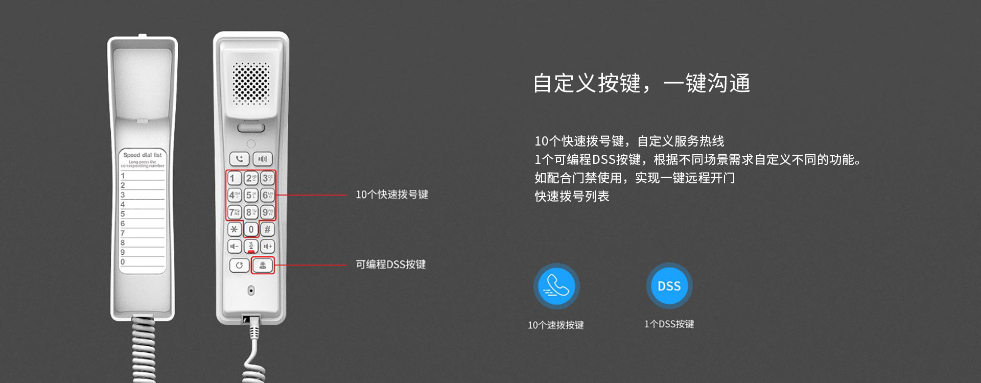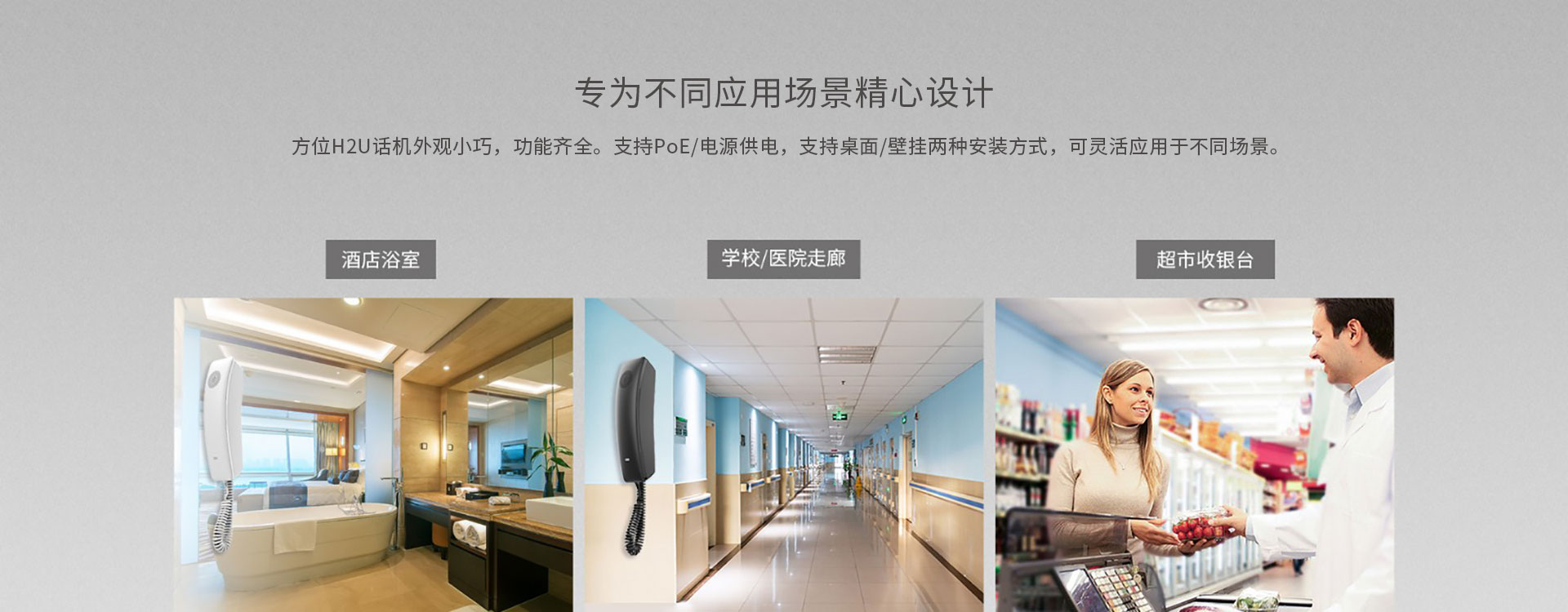方位H2U迷你 IP话机外观时尚小巧,功能强大,拥有2条SIP线路,10个快速拨号键,1个可编程DSS按键,话机手柄还配备了高清的扬声器。方位H2U话机支持桌面/壁挂两种安装方式,支持PoE供电和电源供电。不仅可以作为酒店话机,还适用于多种应用场景,如学校、医院、超市、住宅等。