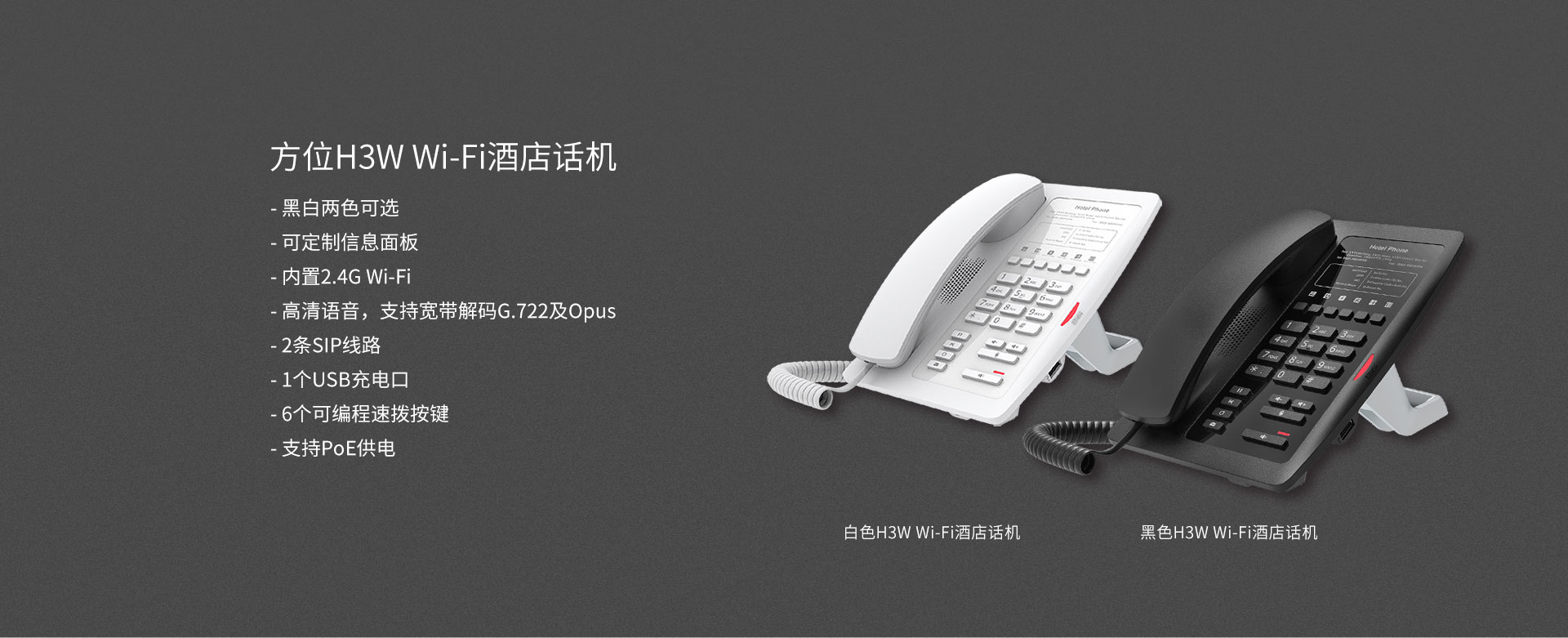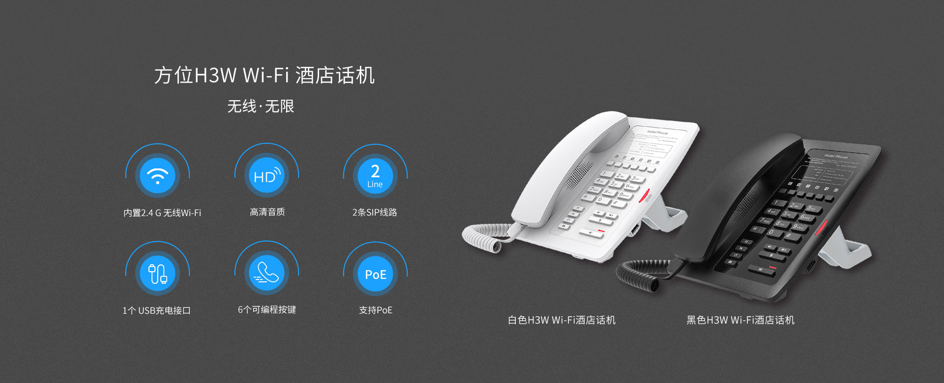 作为一款高颜值Wi-Fi IP话机,方位H3W内置2.4GWi-Fi,为您提供更加流畅的通信体验,免除网络布线的烦恼。方位H3W适用于酒店、超市、医院以及商场等场景。