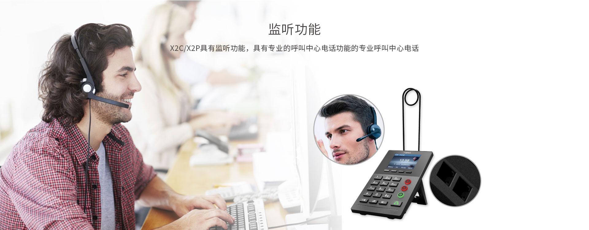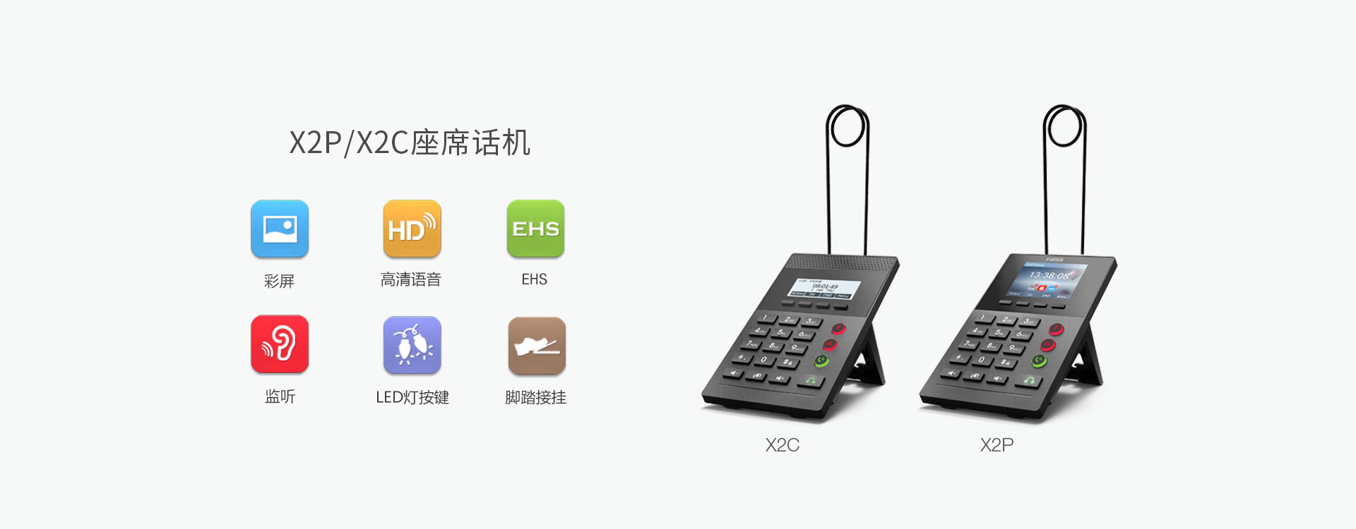 X2P是呼叫中心IP话机,可以用脚踏接挂电话。话机选用国际级高品质材料,配备2.8英寸320x240彩色LCD显示屏,用户界面智能好用。百兆双网口,支持PoE供电。X2P支持2条线路,可以外接RJ9接口耳机,3.5mm接口耳机和EHS耳机,具有监听功能。专为呼叫中心设计的X2P,能够极大的提高呼叫中心工作效率。