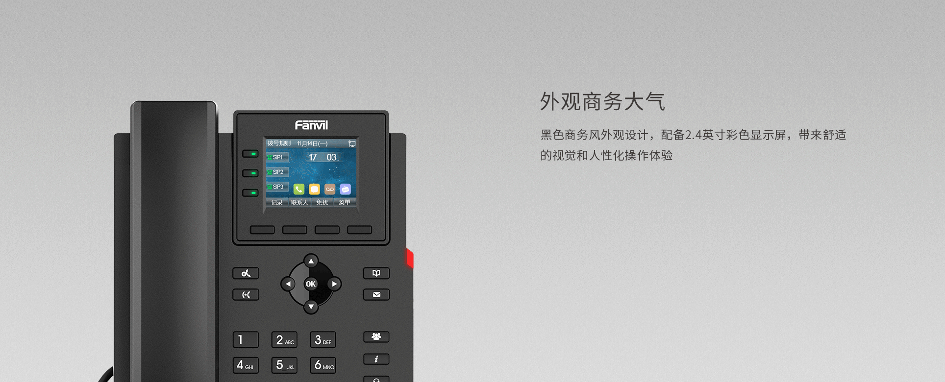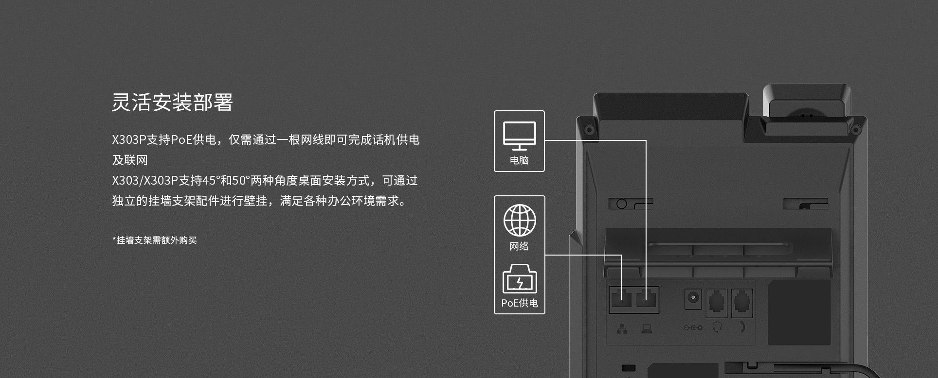 X303/X303P是一款功能强大、高性价比的企业级彩屏网络电话,配备2.4英寸320x240彩色显示屏,拥有4个SIP账号,支持PoE供电 (仅限X303P)、高清语音、六方语音会议等丰富功能;以及可外接EHS无线耳机等扩展功能;可满足不同的企业应用场景,并提供优质的用户体验。