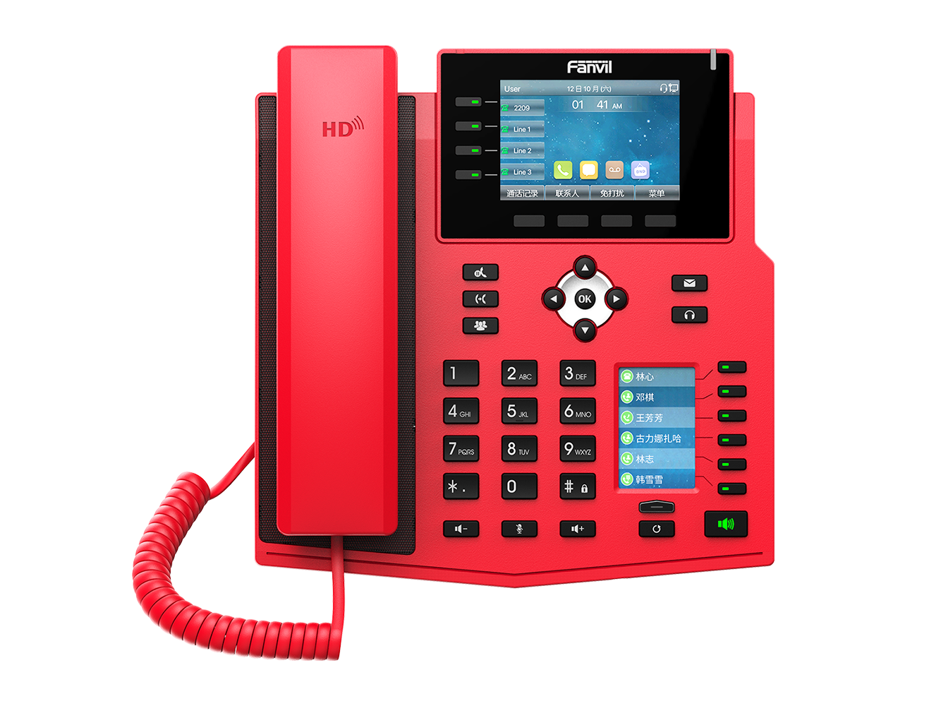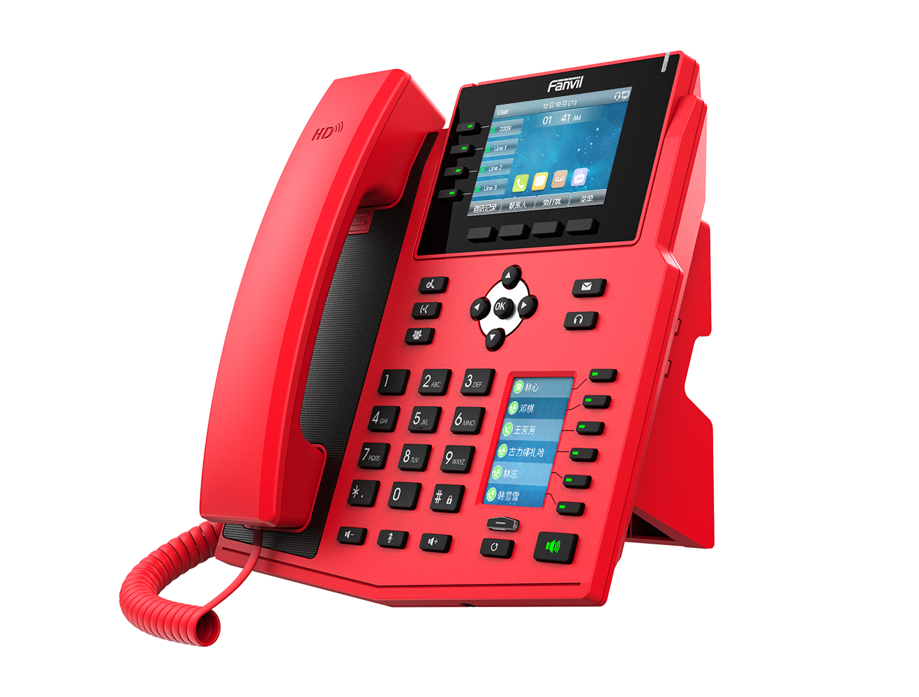 方位推出全新中国红IP话机 -X5U-R,色彩鲜明,在使用中具有高辨识度。特殊的工作环境及紧急情况下,颜色醒目的X5U-R话机能够被一眼识别,缩短反应时间,提高工作效率。 应用场景:例如消防通道、医院、政府机关重要部门等。