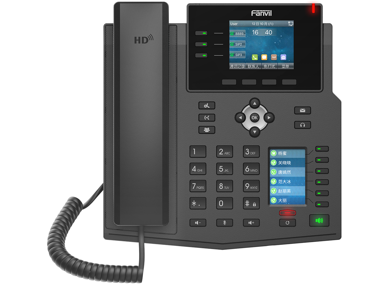 拥有商务优雅的外观,两个高分辨率彩色显示屏,便捷高效的可编程按键以及12条SIP线路,X4U企业IP话机为您带来更高的工作灵活性。方位X4U话机拥有高清扬声器,同时支持G.722和Opus等高清语音解码,无论处于高频段网络或低频段网络,都能为用户提供沉浸式的优质语音体验,全面满足客户的需求。