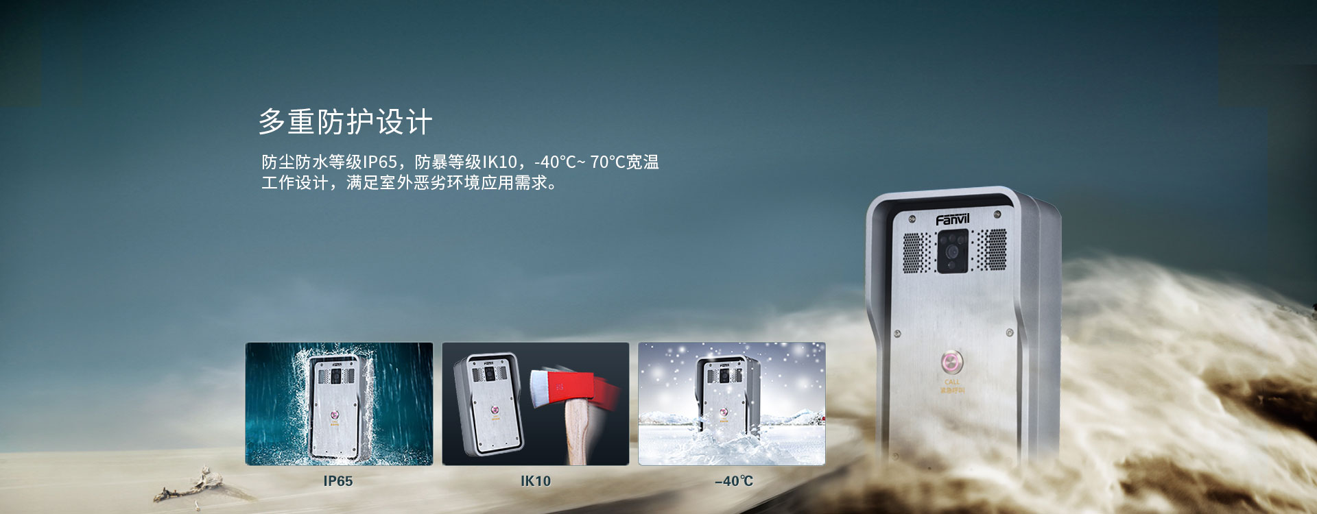 i18S 是基于方位十多年VoIP话机开发的经验和技术,针对安防行业用户需求而研发的一款SIP视频对讲产品,采用标准的IP/RTP/RTSP 传输协议,可完美兼容市场上所有基于标准SIP协议的主流IP PBX/软交换/IMS平台,如 Asterisk, Broadsoft, 3CX, Elastix 等,可实现多台设备快速部署。 i18S 具有稳定性高,高品质音视频等优点,集智能安防、音视频对讲和广 播功能于一体,防尘防水等级为IP65,同时防爆等级为IK10,适用于室内及户外场景,为用户提供优质的通讯对讲服务。