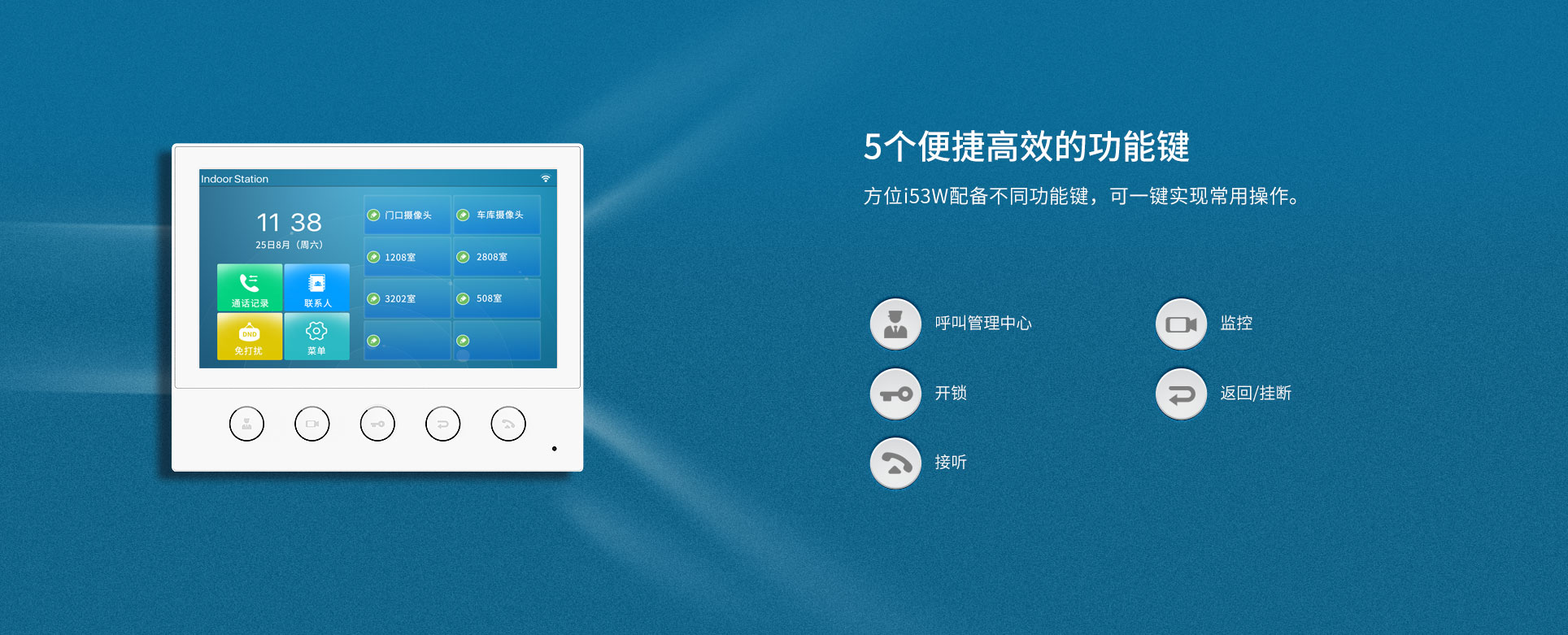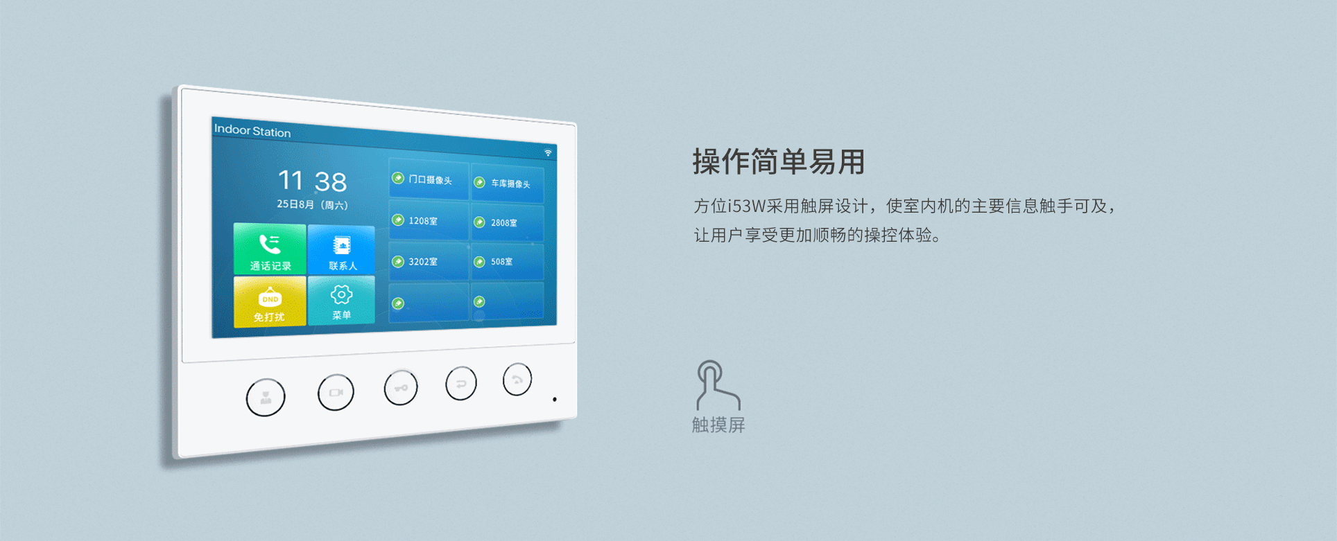 方位i53W是一款7英寸彩色触摸屏SIP室内机,拥有5个功能键,可实现一键远程开门、快速拨号、查看监控等多种功能,高效便捷,适用于各种室内场景。方位i53W拥有丰富的接口,可以灵活拓展报警器等安防设备,为用户提供可靠的安全保障,营造安全舒适的生活环境。