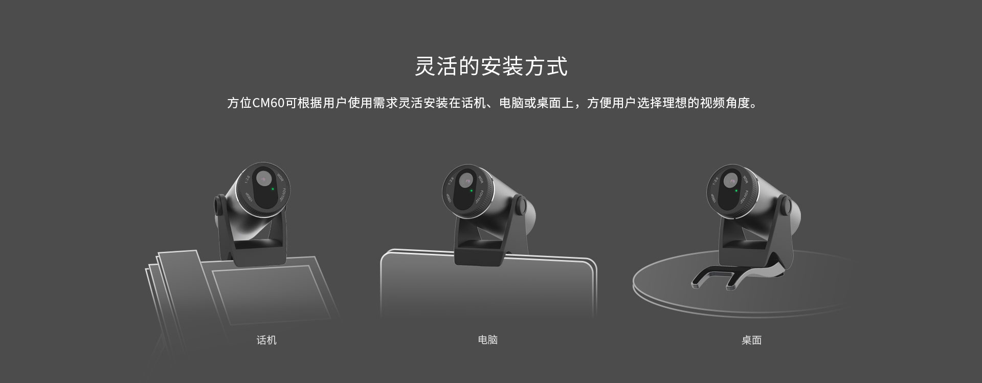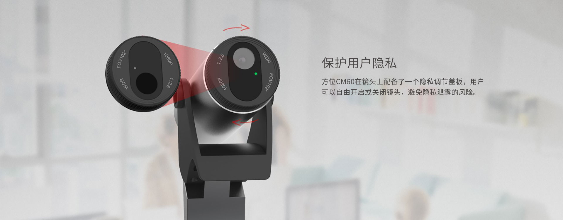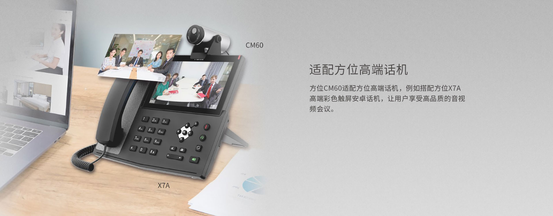 方位CM60是一款便携式USB高清摄像头,适配方位高端话机。它支持即插即用,可灵活安装在话机、电脑或桌面上。支持1080P视频分辨率和H.264视频解码,拥有102°大视角,配备隐私调节盖板,能够为用户提供优质的视频通讯体验。